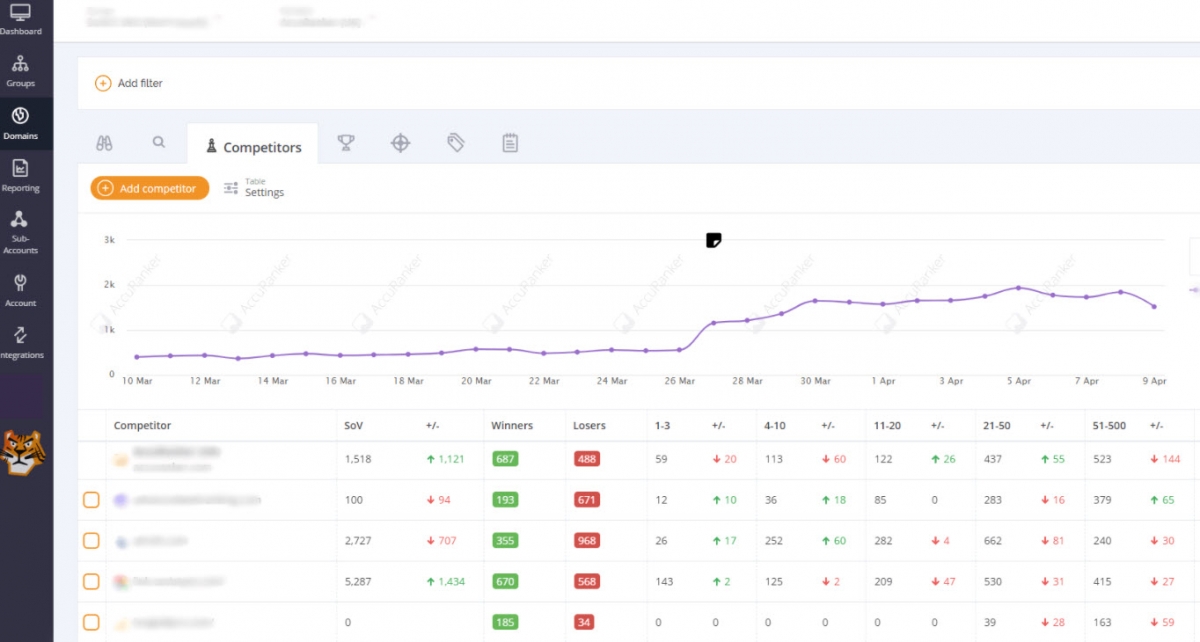 Accuranker is not an all-in-one SEO tool but a specialist in tracking your positions in the search results for certain keywords.
