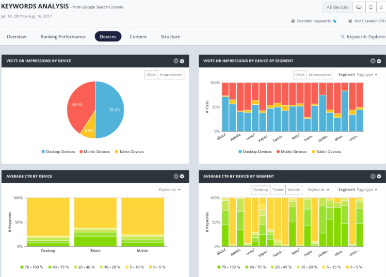 All this information is available with a global vision, a vision by segment (you can “divide” your site by page templates, and business logic: product categories, brands, price ranges, etc.) and at the URL link.