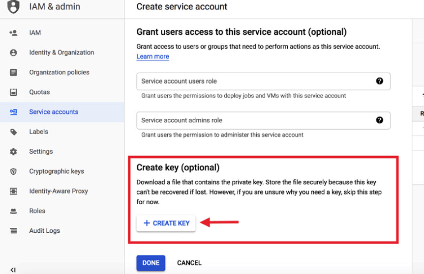 Then click on "Done." Now you can create the API key by clicking on the three little dots under "Actions."