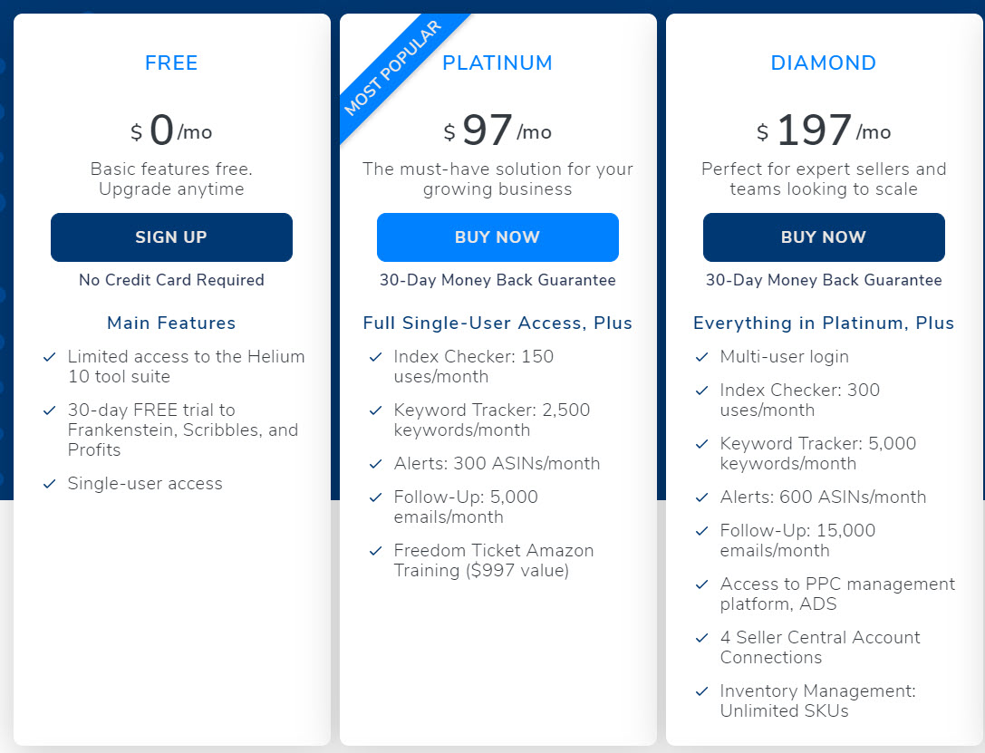 You can benefit from the power of Helium 10 for free. Obviously, some features of the program are limited, or even simply disabled in the free version.