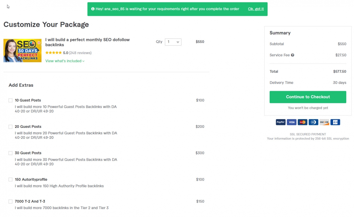 Fiverr has a unique point that orders will start at $ 5, which seems beneficial to the buyer because the price is too low. However, I emphasize that it is the "starting price," which means that the seller can sell additional upsell packages, cross-sale of that service.