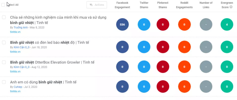 The results are all existing articles on the computer on the topic of "thermos flasks", with the amount of interaction of articles so you can decide which content to choose and do better than they do. are going to be.