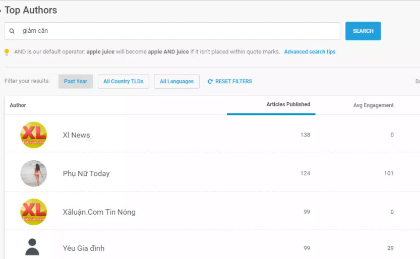 So with the keyword "lose weight" when searching on Twitter, there will be very few quality influencers in Vietnam, instead I will search for the keyword "lose weight".