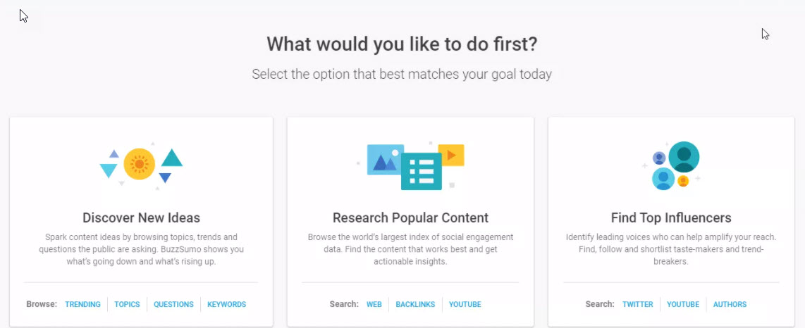 - Content : On this tab, Buzzsumo offers a lot of features so that you can do almost anything by researching exact content in your field.