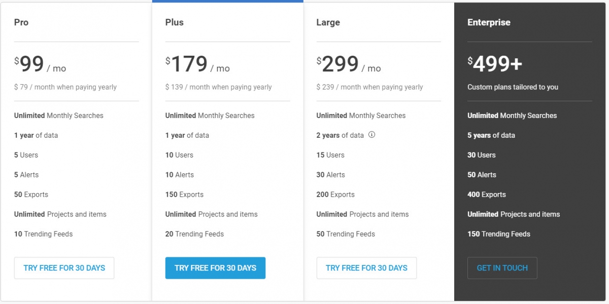 Buzzsumo starts at $99/month and the most expensive plan is $499/month, which is not affordable for individual use.