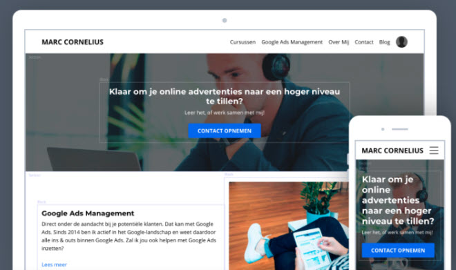 Your website is also immediately made mobile friendly. So you don't have to worry about that. You can see a preview of this at any time in your back-end.