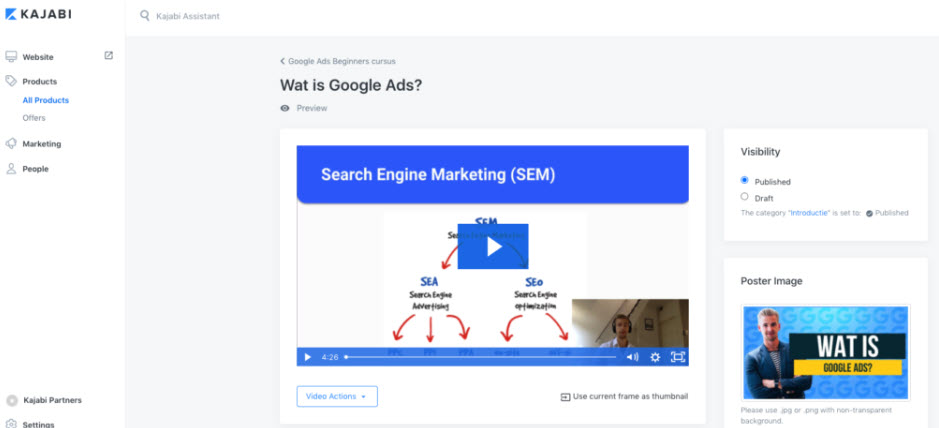 Then actually Kajabi's showpiece: the courses. Most people choose Kajabi because of the possibilities it offers in terms of courses. And I understand that.