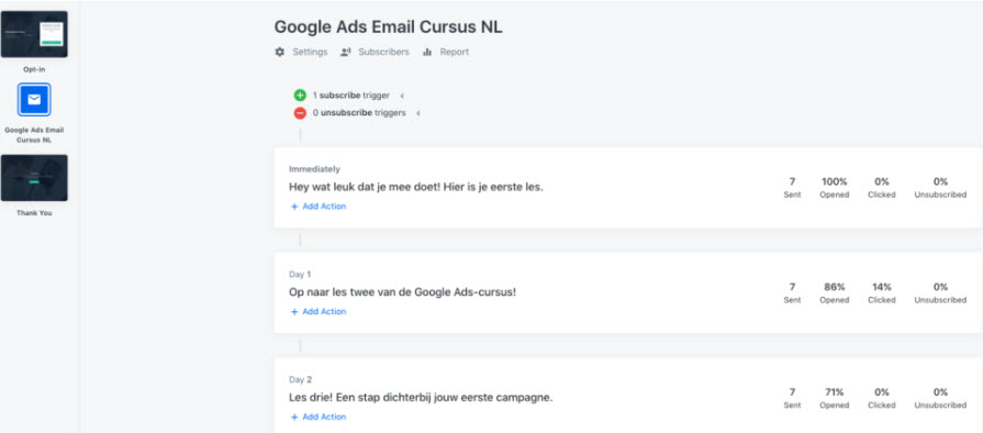You can create entire email flows. For example, I have designed an automated Google Ads Email Course that contains fairly basic tips. But that doesn't matter. You do have the email addresses of people who can potentially purchase your course.