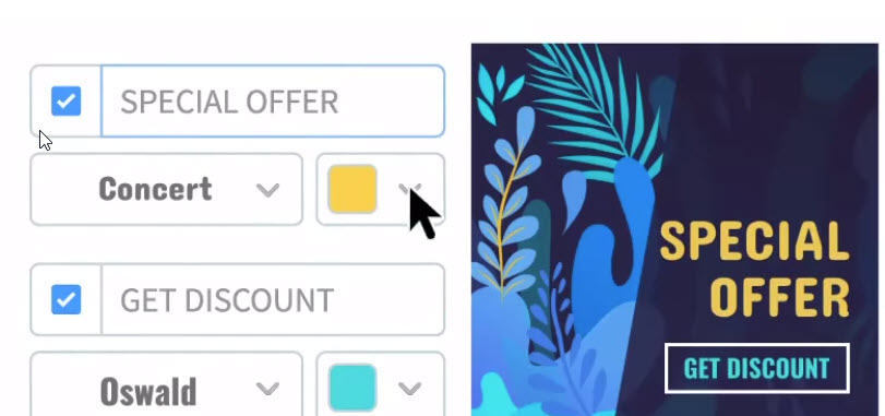 In the example below, you can see how to customize an advertising banner with just a few clicks: