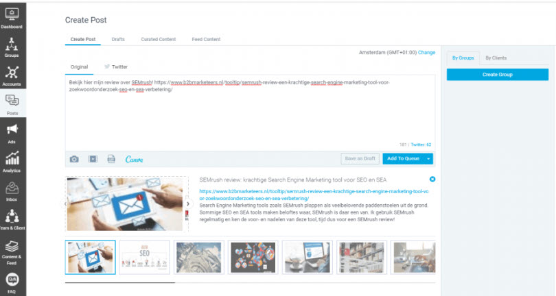 It is not without reason that SocialPilot is one of the most used tools for Social Media Management. It is easy to use, stable and the functions are extensive. Much thought has been given to the application of Social Media Management as agencies and teams do at larger organizations. Creating and scheduling posts is very easy. This is definitely a strength of SocialPilot.